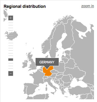 clickpublic generated based on the IP addresses of subscribers an overview of the 'local distribution'. If openings were counted in one country, this will be color coded. By clicking on the country a magnified view appears and cities become visible as points. The larger the dots, the more Openings were counted in this city. Move the cursor over an item, you see the Openings to the location. The data relate to the unique Openings (unique).
